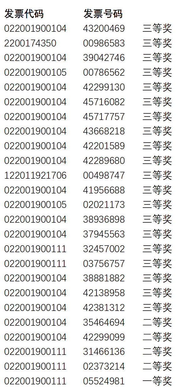 1.兑奖时应持与中奖号码一致的发票原件(增值税电子普通发票,应提供中奖发票版式文件的打印件);