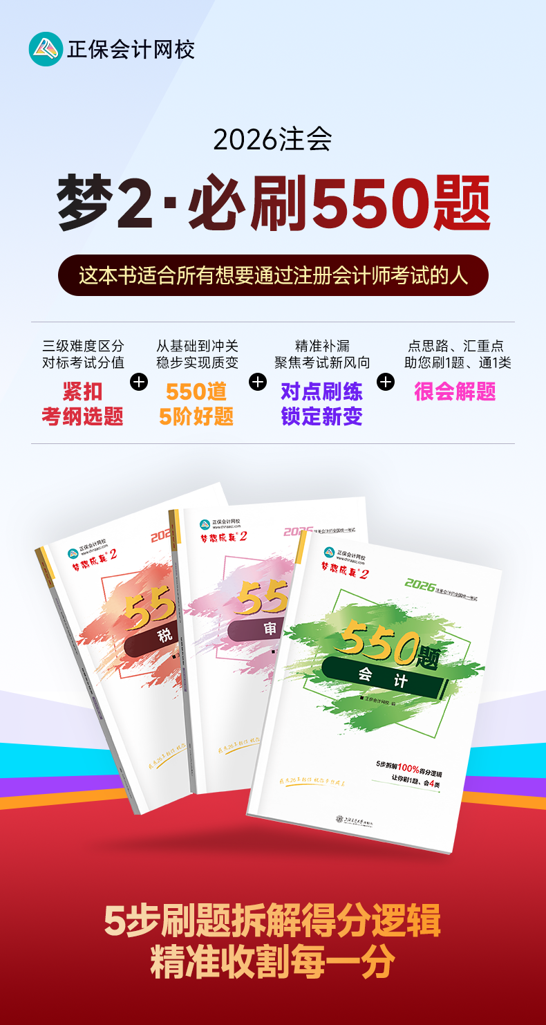 > 2026年注册会计师“梦想成真”系列辅导书《会计》必刷550题