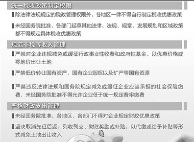 “坚持税收法定原则,统一税收政策制定权限,是切实规范各类税收等优惠政策的前提。通知明确,除法律法规规定外,各地区一律不得自行制定税收优惠政策,未经国务院批准,各部门起草其他法律、法规、规章、发展规划和区域政策都不得规定具体税收优惠政策,这一点很重要。”上海财经大学公共政策与治理研究院院长胡怡建教授表示,这意味着,税收优惠政策将由国家统筹考虑制定,各地不能自行其是,将有利于避免政策的随意性,减少政府对市场的干扰。