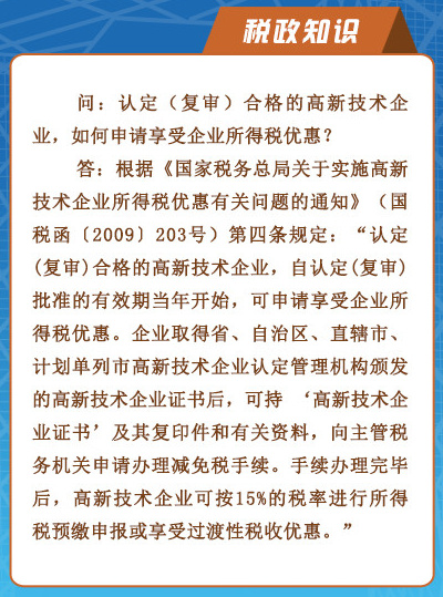 复审合格的高新技术企业如何申请享受企业所得税优惠