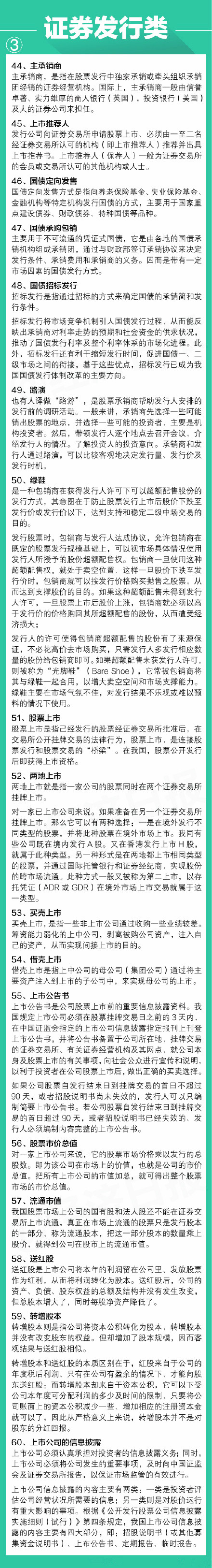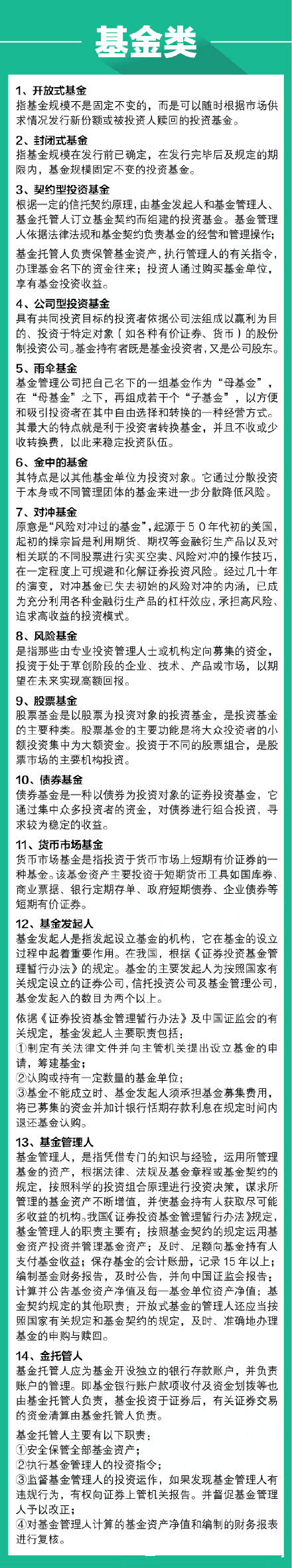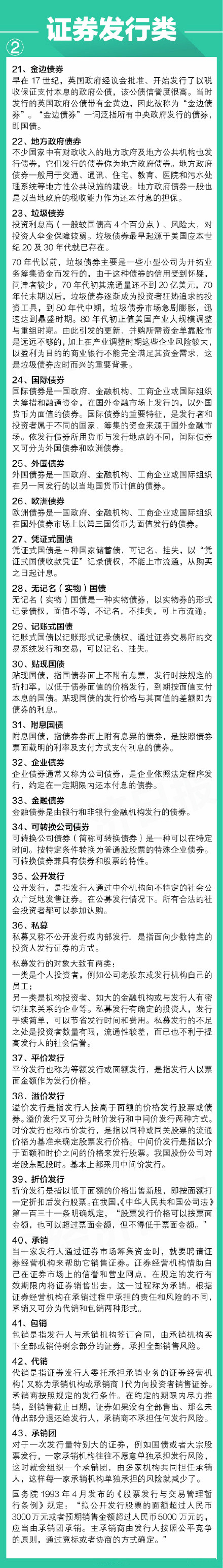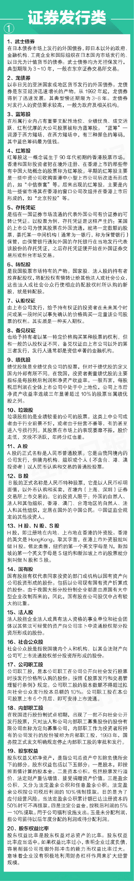 ①基金类②兼并与收购类③金融衍生工具类④证券发行类⑤证券交易类⑥资产证券化类……史上最全金融名词解释大全,果断转发保存噢!