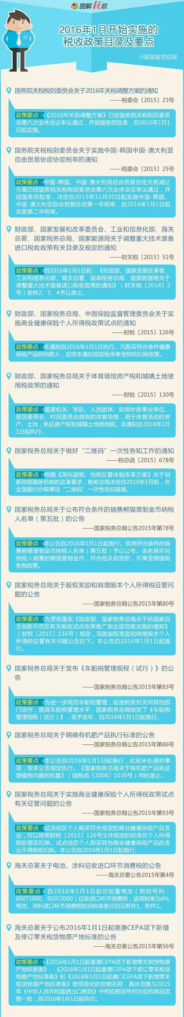 扩散!2016年1月开始实施的税收政策