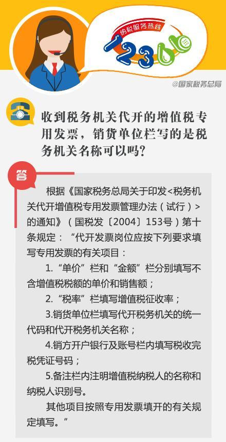 代开专票销货单位栏写的是税务机关名称,可以吗