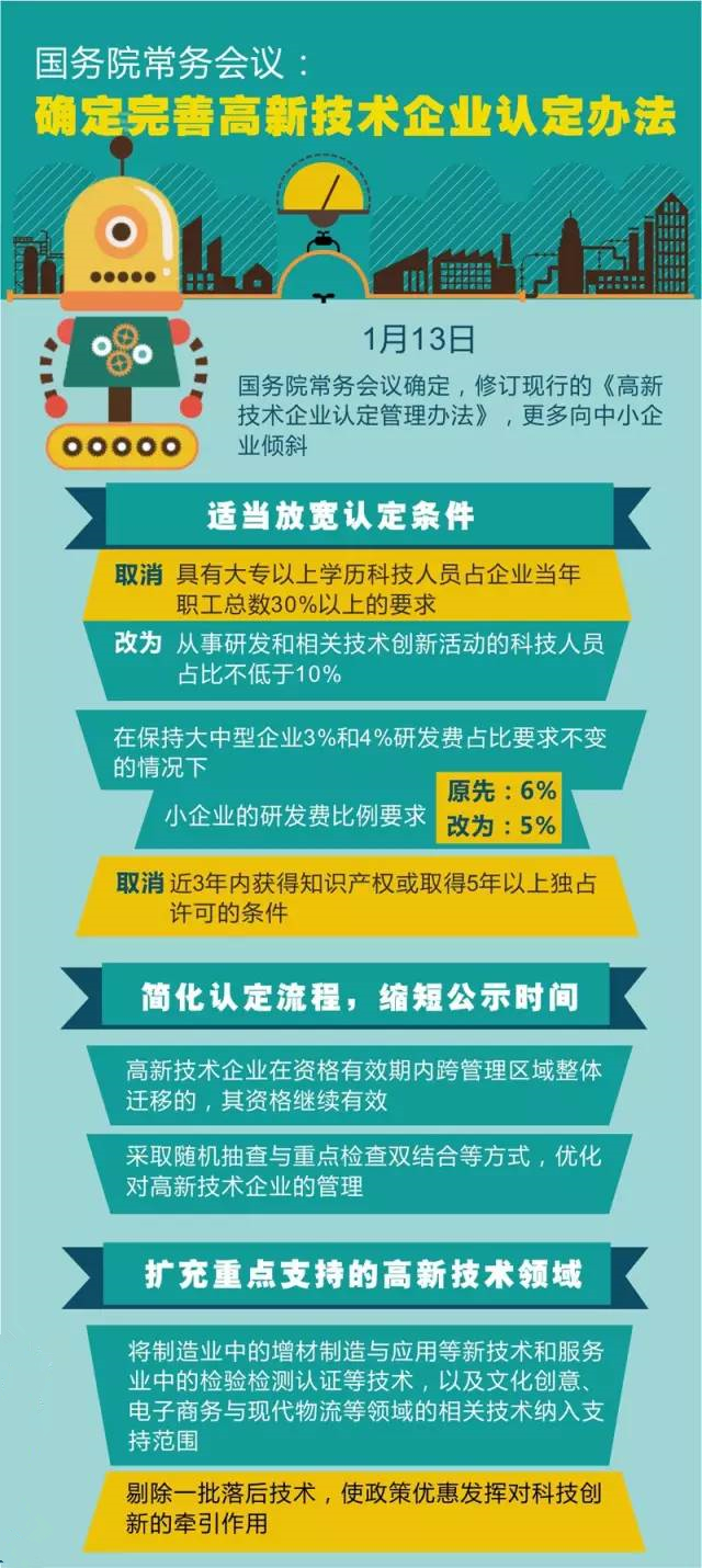 1月13日召开的国务院常务会议确定,修订现行的《高新技术企业认定管理办法》,更多向中小企业倾斜。一图了解要改哪儿↓