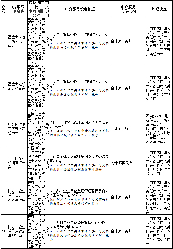 第二类:由原来的申请人委托中介机构提供相关材料,改为审批部门根据审批工作需要委托开展技术性服务(涉及会计师事务所共6项)