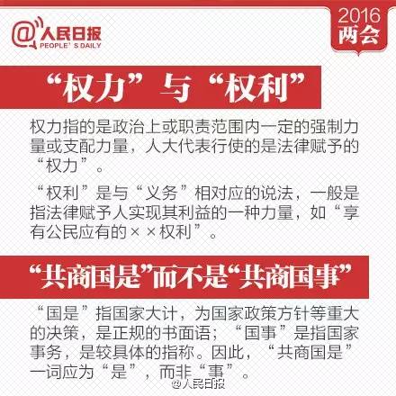 ①“届”和“次”:人大会议是“x届全国人大x次会议”,政协会议是“全国政协x届x次会议”;②“提案”和“议案”:全国人大代表提的是“议案”,全国政协委员提的是“提案”;③代表委员“共商国是”,不是“共商国事”。更多↓↓戳图学习!