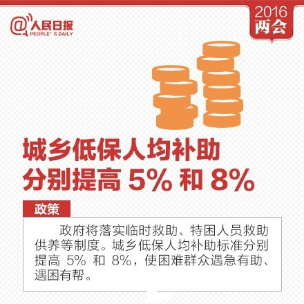 企业和机关事业单位退休人员养老金标准提高约6.5%;城乡低保人均补助标准分别提高5%和8%;贫困学生将率先免除高中学杂费……3月16日,十二届全国人大四次会议将闭幕,可传递出来的利好消息却将继续影响我们的生活。影响你的“钱袋子”和未来日子的政策“红包”↓↓了解,扩散!