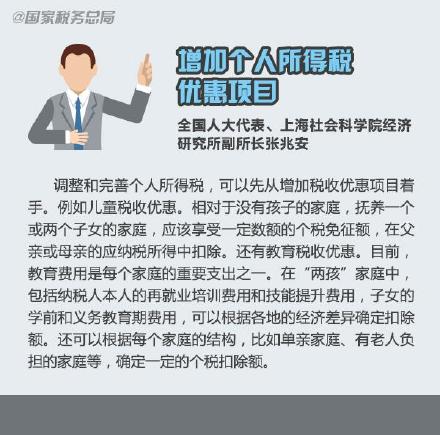 ①全国人大代表张兆安:增加个人所得税优惠项目;