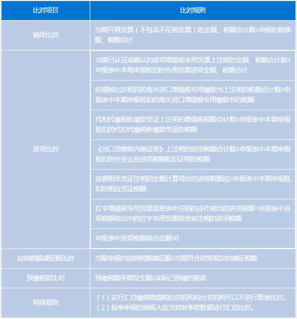 根据规程的规定,税务机关会在纳税人完成申报后,对以下几点进行比对: