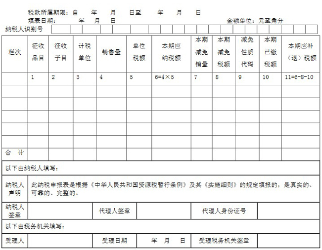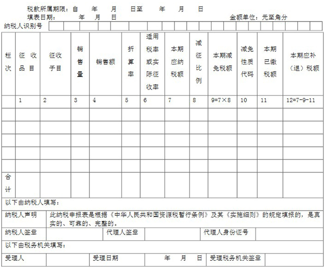 1.本表适用于资源税纳税人填报(国家税务总局另有规定者除外)。