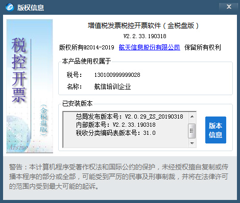 4.升级成功标识。升级后开票软件(金税盘版)版本为V2.2.33.190318,升级后软件如下图: