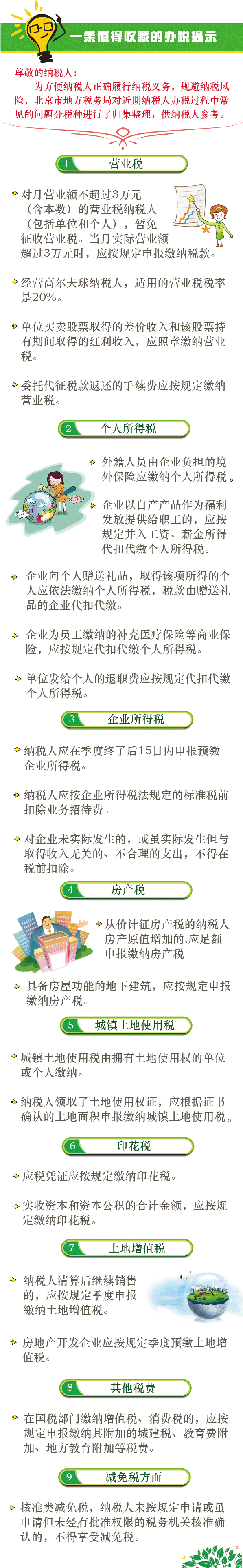 为方便纳税人正确履行纳税义务,规避纳税风险,北京市地方税务局对近期纳税人办税过程中常见的问题分税种进行了归集整理,供纳税人参考。