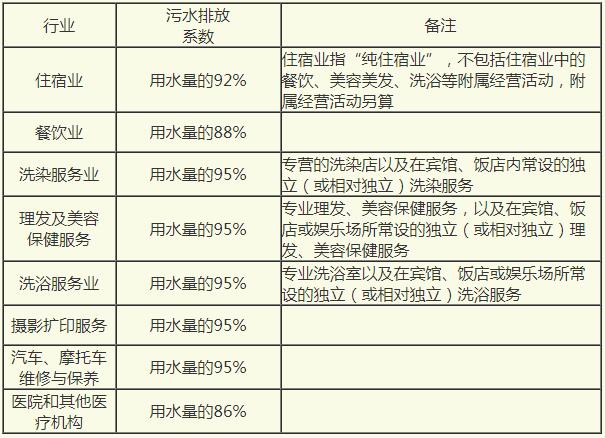 小型三产污水排放系数表