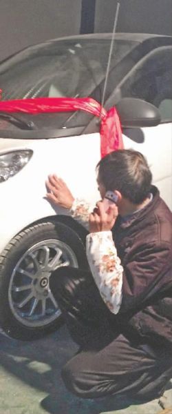 陈海林蹲在汽车旁,不停打电话寻找买主