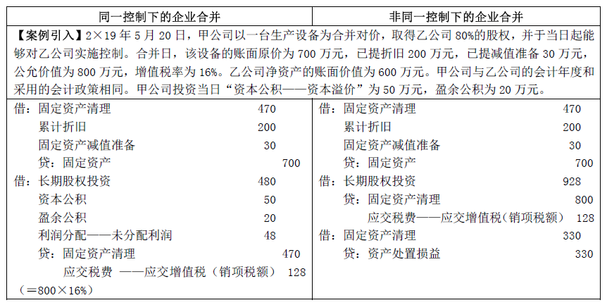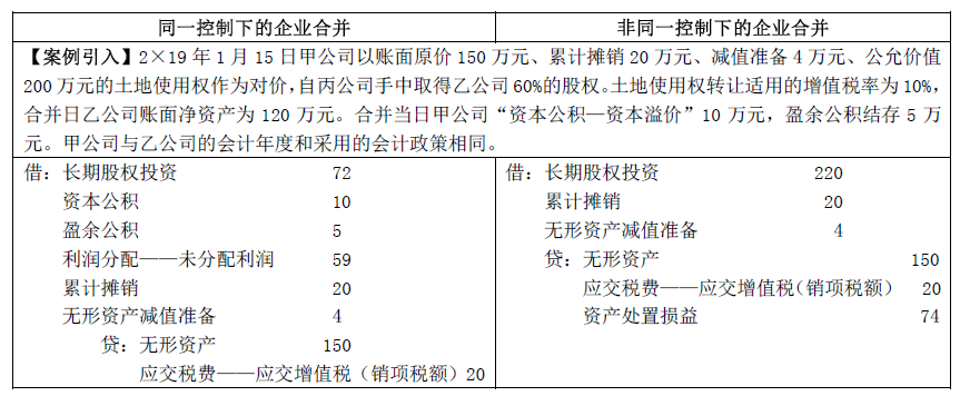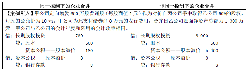 1.同一控制下的企业合并、非同一控制下的企业合并的初始处理比较