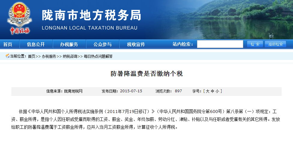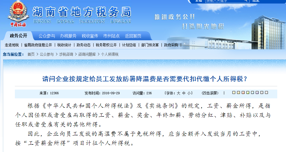 高温津贴是指用人单位为了补偿职工在高温作业环境下的特殊或额外的劳动消耗津贴,是工资的组成部分。炎炎夏日,如果能收到单位发放的一笔高温津贴,心里也会有些许确幸,毕竟不是每个单位都能做到的,虽然各地相关部门都有自己的规定,但是有的单位确实没有执行。下面我们先看一下部分地区的相关规定,然后再看一下相关的所得税处理。