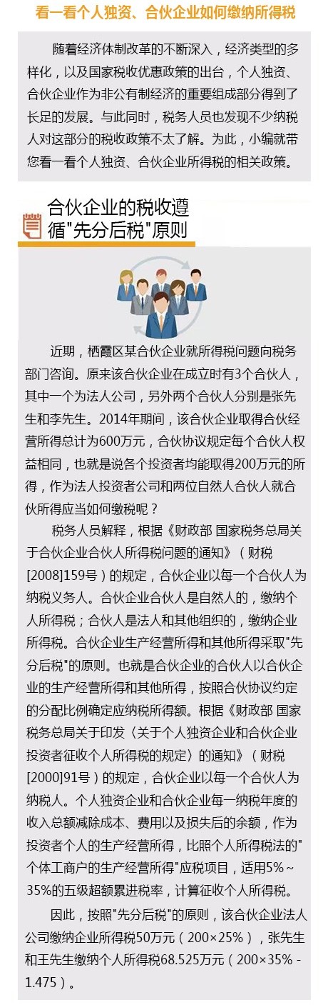 个人独资、合伙企业如何缴纳所得税 一图全知道!