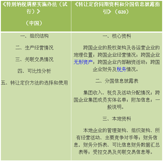 现行同期资料主要内容的结构与BEPS第13项行动计划的区别对比
