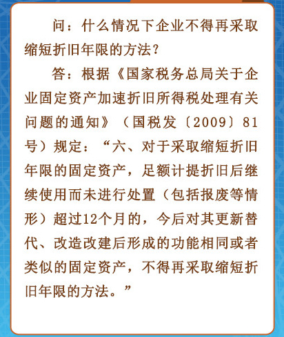 什么情况下企业不得再采取缩短折旧年限的方法?小编搜集国家税务总局关于企业固定资产加速折旧所得税处理有关问题的相关规定,希望对大家有所帮助,详情如下图: