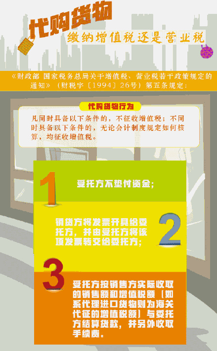 代购货物缴纳增值税还是营业税?小编搜集了相关规定,供您参考,希望对您有所帮助,详情见下图: