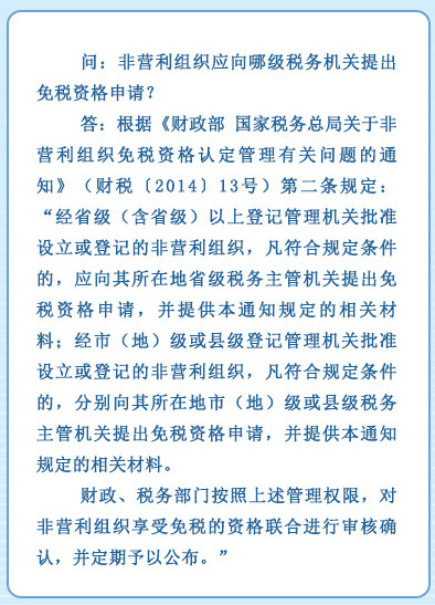 非营利组织应向哪级税务机关提出免税资格申请?小编搜集了相关政策规定,供您参考,希望对您有所帮助,详情如下图: