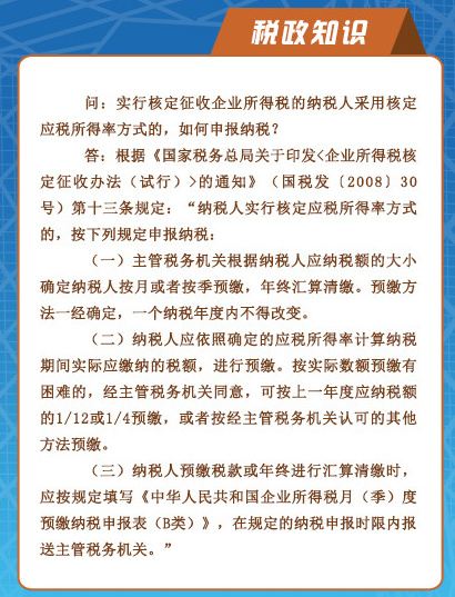 实行核定征收企业所得税的纳税人采用核定应税所得率方式的,如何申报纳税?小编搜集了相关政策规定,希望对您的实际工作有所帮助。