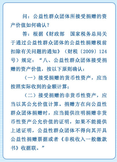 公益性群众团体所接受捐赠的资产价值如何确认?小编搜集了相关政策规定,希望对您有所帮助。详情如下图: