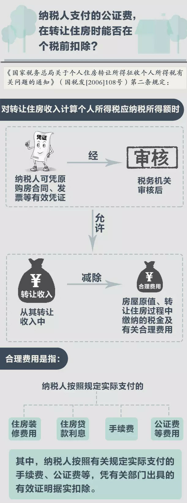 纳税人支付的公证费,在转让住房时能否在个税前扣除?小编搜集了相关政策规定,希望对您有所帮助。