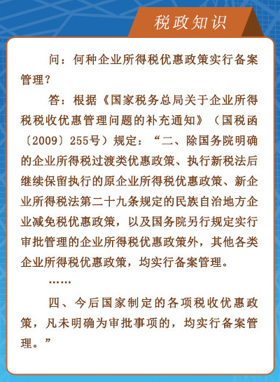 何种企业所得税优惠政策实行备案管理?