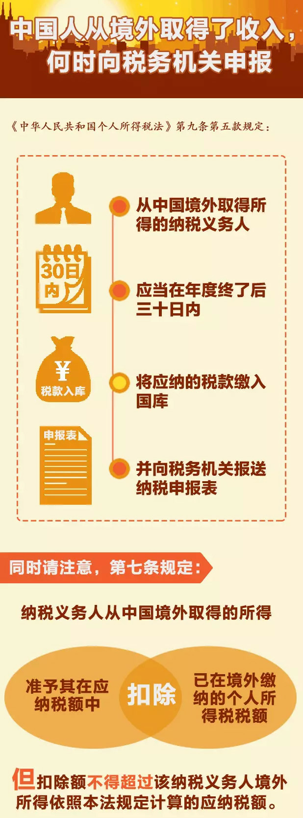 中国人从境外取得了收入,何时向税务机关申报