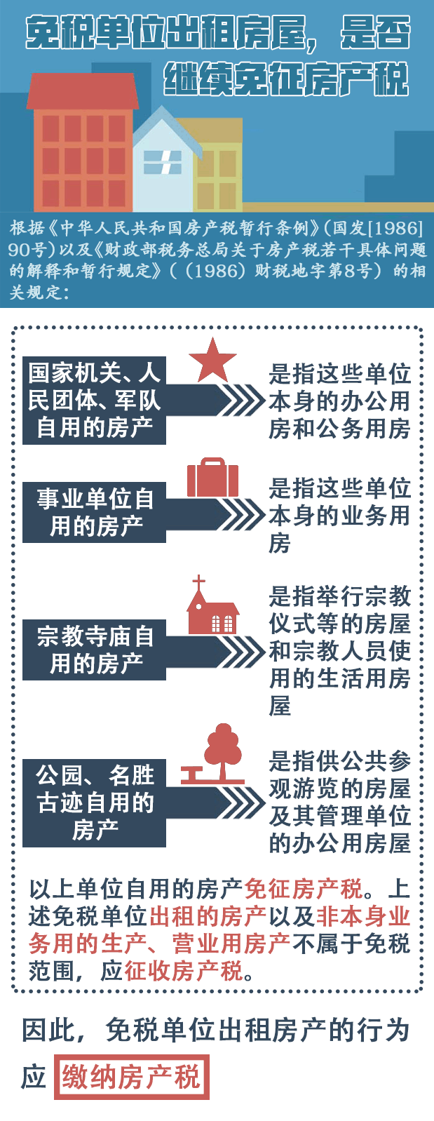 免税单位出租房屋,是否继续免征房产税?小编搜集了相关政策规定,希望对您有所帮助,详情如下图: