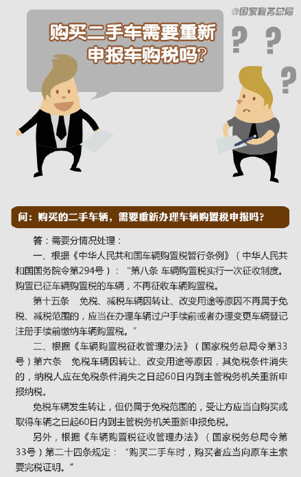 购买的二手车,需要重新办理车辆购置税申报吗?小编搜集了相关政策规定,希望对您有所帮助,详情如下图: