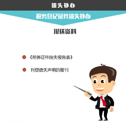 遗失税务登记证件的纳税人、扣缴义务人,如实填写《税务证件挂失报告表》,并将纳税人名称、税务登记证件名称、税务登记证件号码等在市级以上公开发行的报刊上作遗失声明,凭刊登的遗失声明向税务机关申请补办税务登记证件。具体流程是什么?6图了解↓
