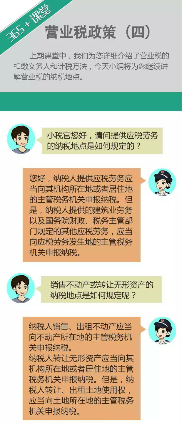 上一期,我们为您详细介绍了营业税的扣缴义务人和计税方法,今天小编将为您继续讲解营业税的纳税地点。