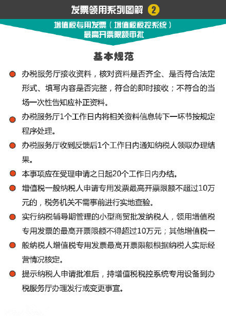税务机关依据增值税一般纳税人的申请,审批其开具增值税专用发票、货物运输业增值税专用发票最高限额。如何提出申请?具体流程是怎样的?需要提交哪些材料?6图了解↓↓↓