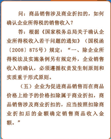 商品销售涉及商业折扣的,如何确认企业所得税的销售收入?小编搜集了相关的政策规定,希望对您有所帮助,详情如下图:
