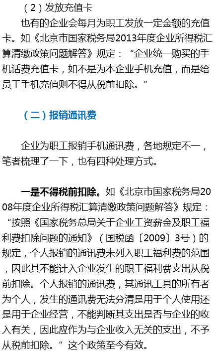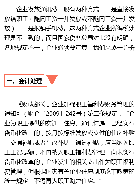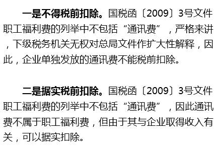 企业发放通讯费一般有两种方式,一是直接发放给职工(随同工资一并发放或不随同工资一并发放),二是报销手机费。这两种方式企业所得税处理是不一致的,而且国家税务总局对此没有明确,各地规定不一,企业必须要注意。我们来逐一分析。