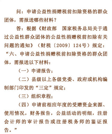 申请公益性捐赠税前扣除资格的群众团体,需报送哪些材料?小编搜集了相关政策规定,希望对您有所帮助。