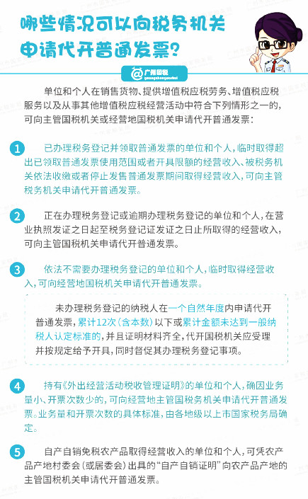 哪些情况可以向税务机关申请代开普通发票?小编搜集了相关政策规定,希望对您有所帮助。