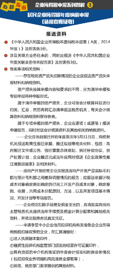 实行查账征收企业所得税的纳税人,依税收法律法规及相关规定确定的申报内容,在年度终了之日起5个月内或自实际经营终止之日起60日内,向税务机关申报年度企业所得税并办理汇算清缴。需报送哪些资料?基本流程是啥?