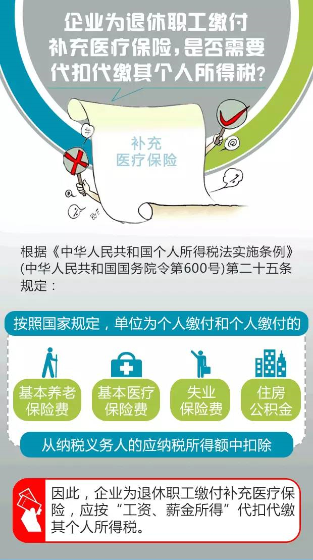 企业为退休职工缴付补充医疗保险,是否需要代扣代缴其个人所得税? 小编搜集了相关政策规定,希望对您有所帮助。
