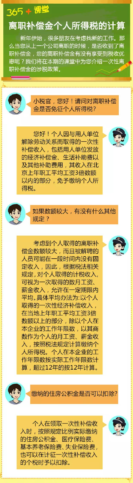 新年伊始,很多朋友在考虑找新的工作。那么当您从上一个公司离职的时候,是否收到了离职补偿金,您的离职补偿金有没有享受到税收优惠呢?我们将在本期的课堂中为您介绍一次性离职补偿金的涉税政策。