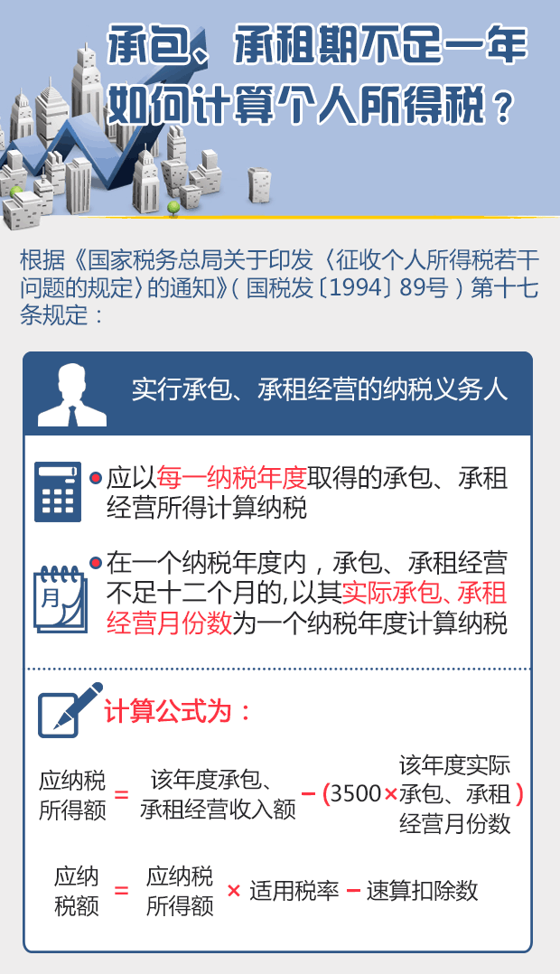 承包、承租期不足一年如何计算个人所得税,小编搜集了相关政策规定,希望对您有所帮助。