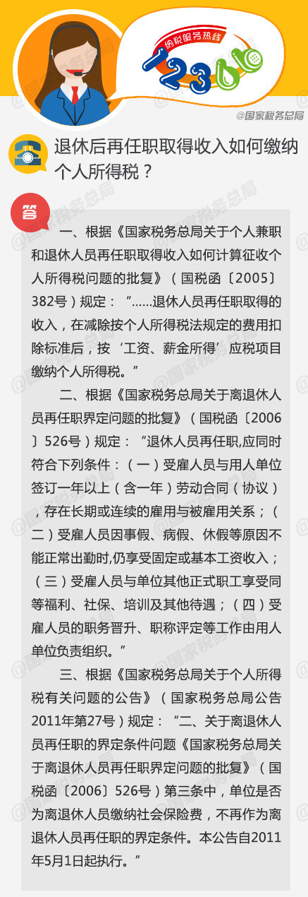 退休后再任职取得收入如何缴纳个人所得税?