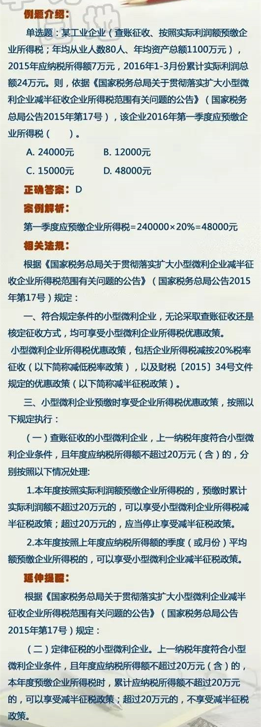 小型微利企业所得税预缴如何计算,一道例题教会你!