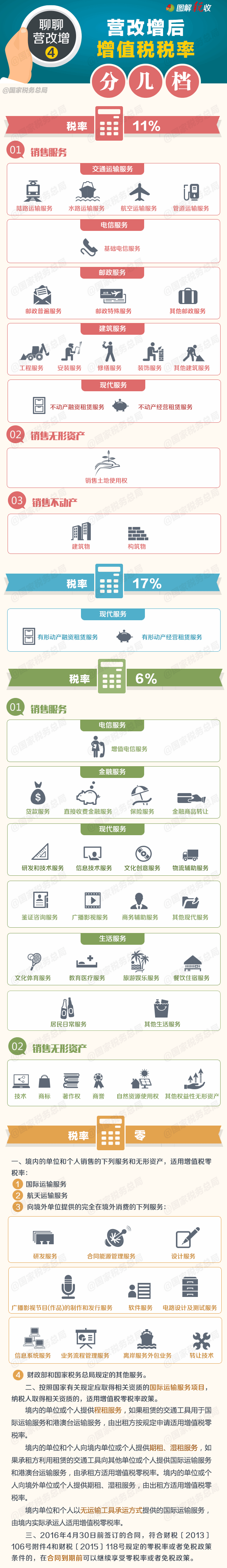 《财政部、国家税务总局关于全面推开营业税改征增值税试点的通知》日前发布,通知附件明确了全面营改增后的增值税税率,具体分几档呢?戳图了解↓