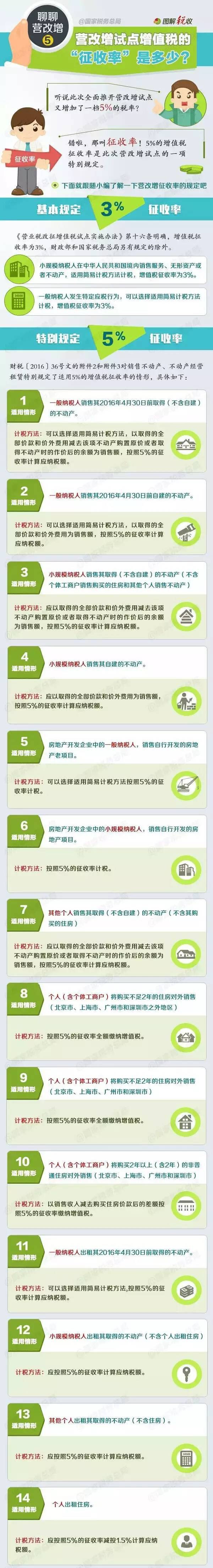 听说此次全面推开营改增试点又增加了一档5%的税率?错啦,那叫征收率!5%的增值税征收率是此次营改增试点的一项特别规定。戳图了解营改增征收率的相关规定↓