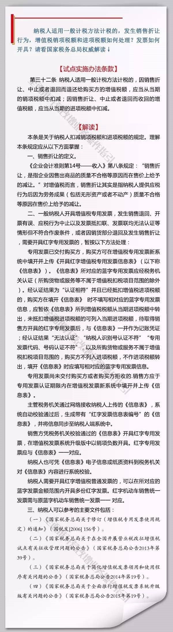 纳税人适用一般计税方法计税的,发生销售折让行为,增值税销项税额和进项税额如何处理?发票如何开具?请看国家税务总局权威解读↓