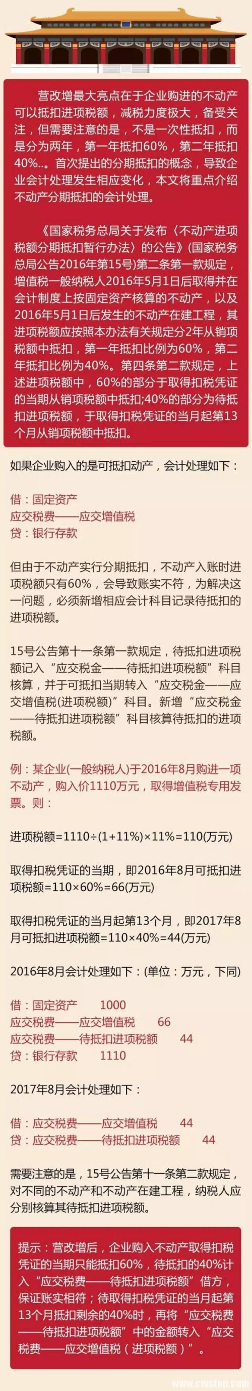 营改增后不动产可以抵扣进项税,分期抵扣如何做账?小编搜集了相关政策规定,希望对您有所帮助。