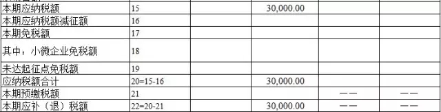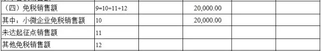 如果纳税人登记注册类型为个体工商户,此时计税依据部分小微免税收入20000元应填报于主表第9行和第11行。